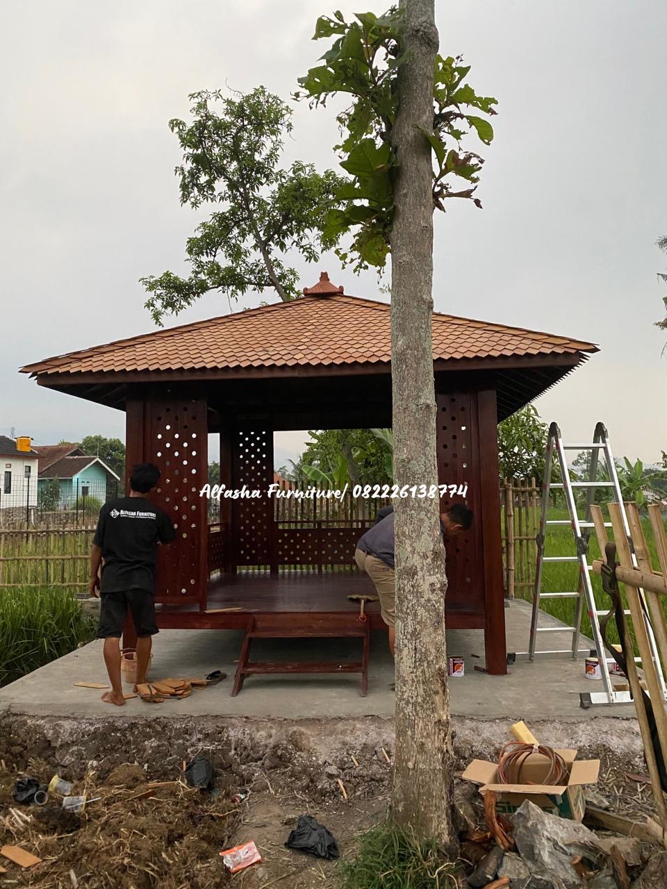 Di alfashafurniture.com memproduksi berbagai model dan desain gazebo yang menarik, Anda bisa menemukan dan melihat banyak katalog online di website kami secara lengkap dengan spesifikasi produk yang sudah kami sediakan untuk Anda, tentu dengan tambahan fitur dan petunjuk yang kami buat guna mempermudah Anda dalam berselancar di toko online kami. Serta ditambah lagi dengan proses finishing yang dikerjakan oleh tenaga tukang yang sudah ahli & berpengalaman di bidangnya, kualitas menjadi hal utama yang sangat penting di toko kami, dengan demikian menjadikan hal tersebut sebagai kunci keberhasilan & kesuksesan perusahaan kami dalam menciptakan suatu produk furniture yang unggul. Jangan khawatir apabila anda mempunyai desain gazebo kayu , rumah kayu , rumah joglo , gebyok ukiran ataupun furniture lainnya yang berkaitan dengan produk furniture, kami sangat siap membantu kebutuhan atau keinginan anda, dan seperti apakah cara order custom furniture? Caranya, silahkan hubungi kontak kami , kemudian jelaskan yang anda inginkan, lalu kirimkan gambar kalau ada, kami dengan senang hati akan berdiskusi masalah harga, tingkat kesamaan sampai pilihan tingkat harga akan kami sesuaikan dengan bahan material yang kami miliki. Harga yang kami tawarkan sangat kompetitif dan bersahabat, karena kami tangan pertama atau bisa disebut produsen atau pengrajinnya langsung, Anda bisa membuktikan dengan cek toko lainnya, kemudian Anda bisa melihat dan membandingkan dari sisi model, harga, dan bahan material lainnya.