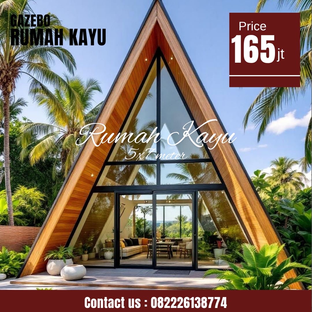 Rumah Glamping Segitiga Minimalis Kayu Jati