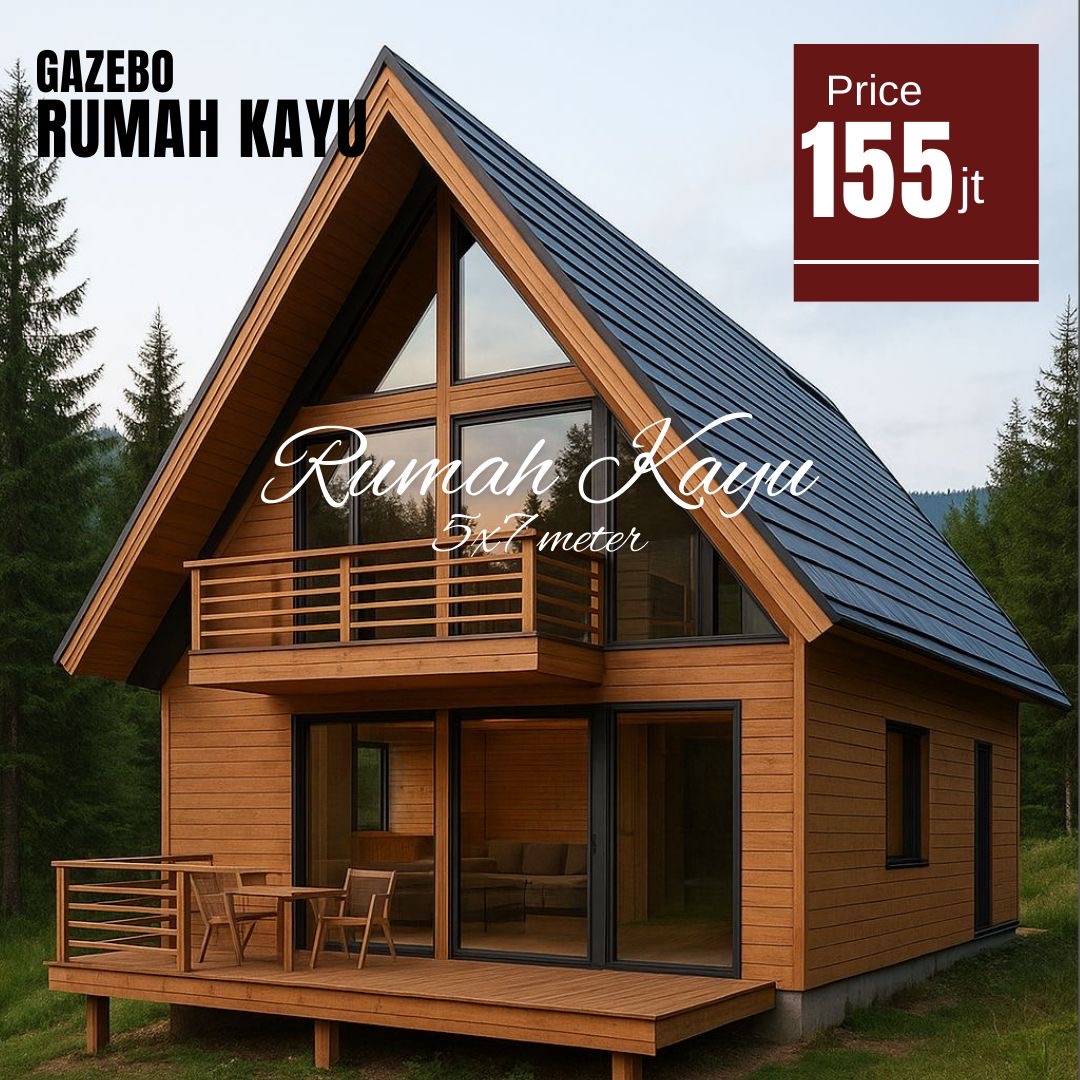 Rumah Segitiga Kayu Jati Minimalis Modern Model Rooftop